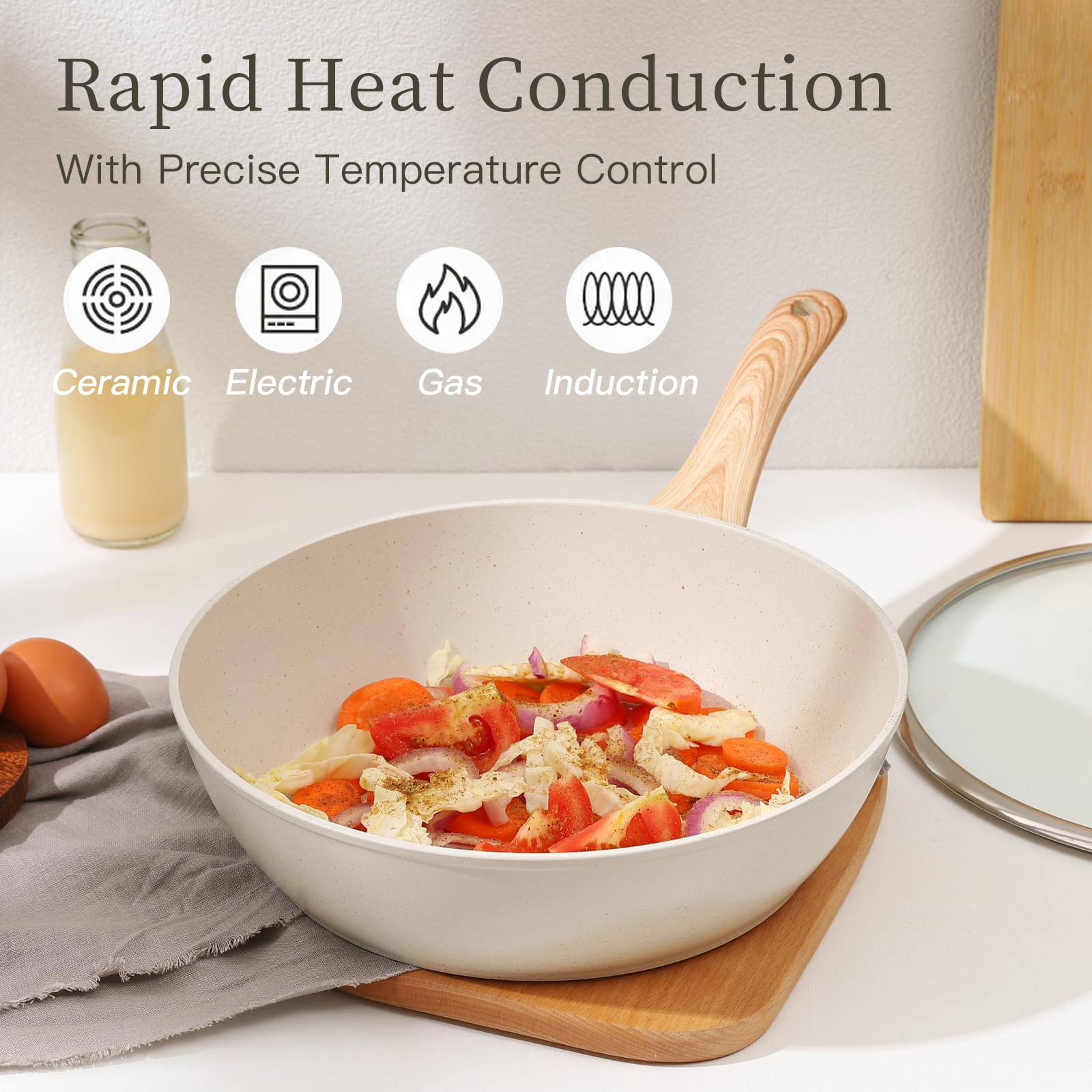 - 【 Rapid & Even Cookware Set】nonstick cookware set with a durable aluminum core, the pot heats up quickly and provides a better and even experience