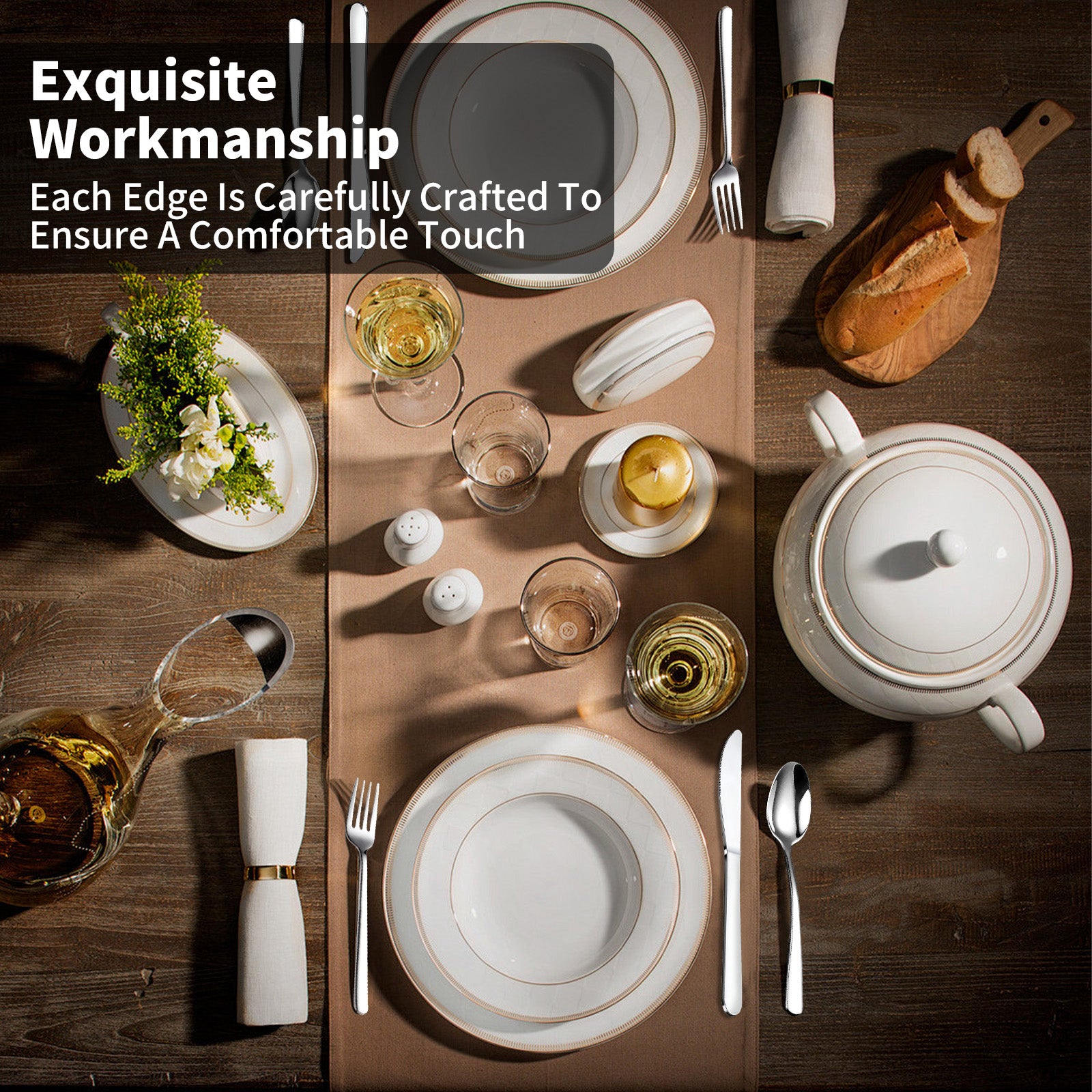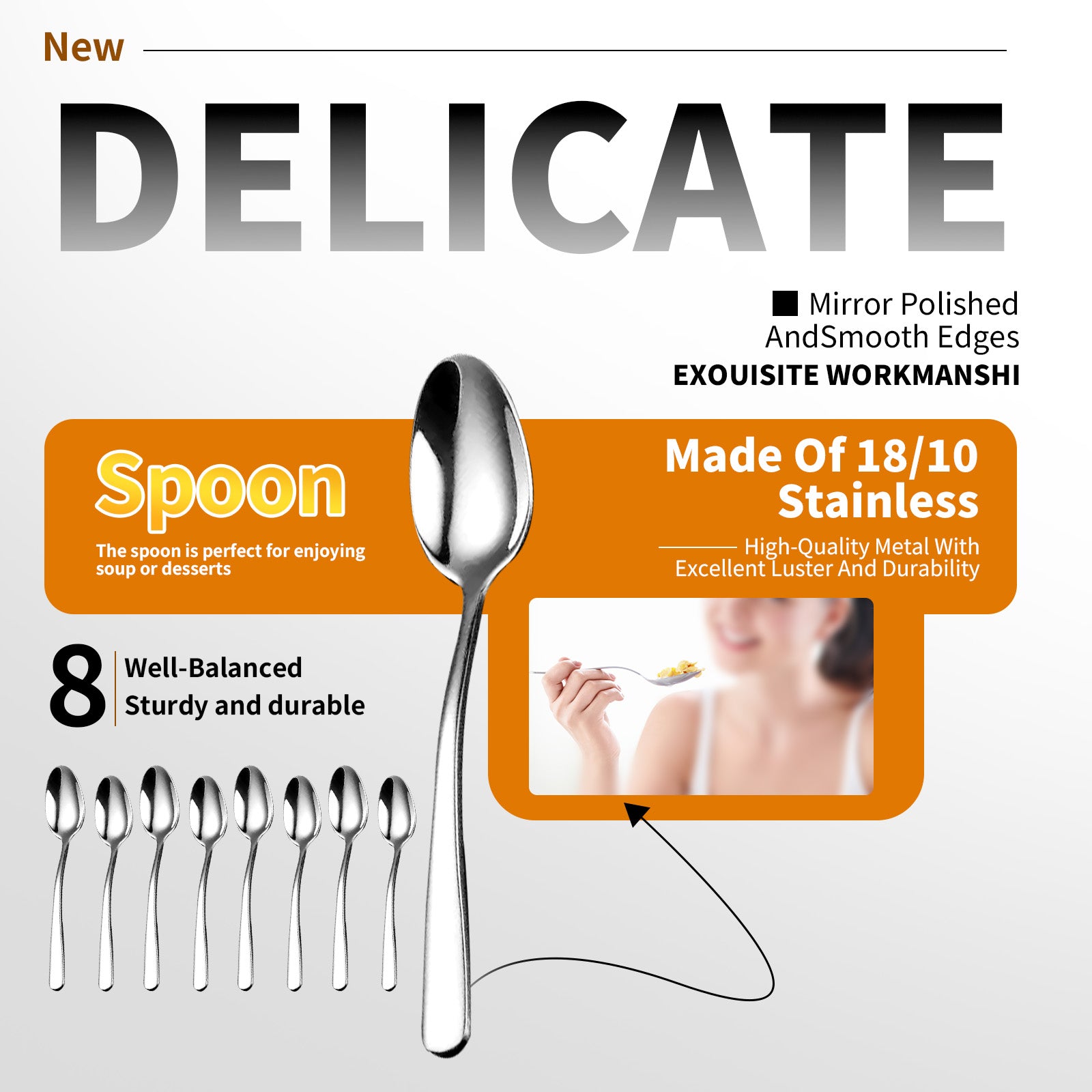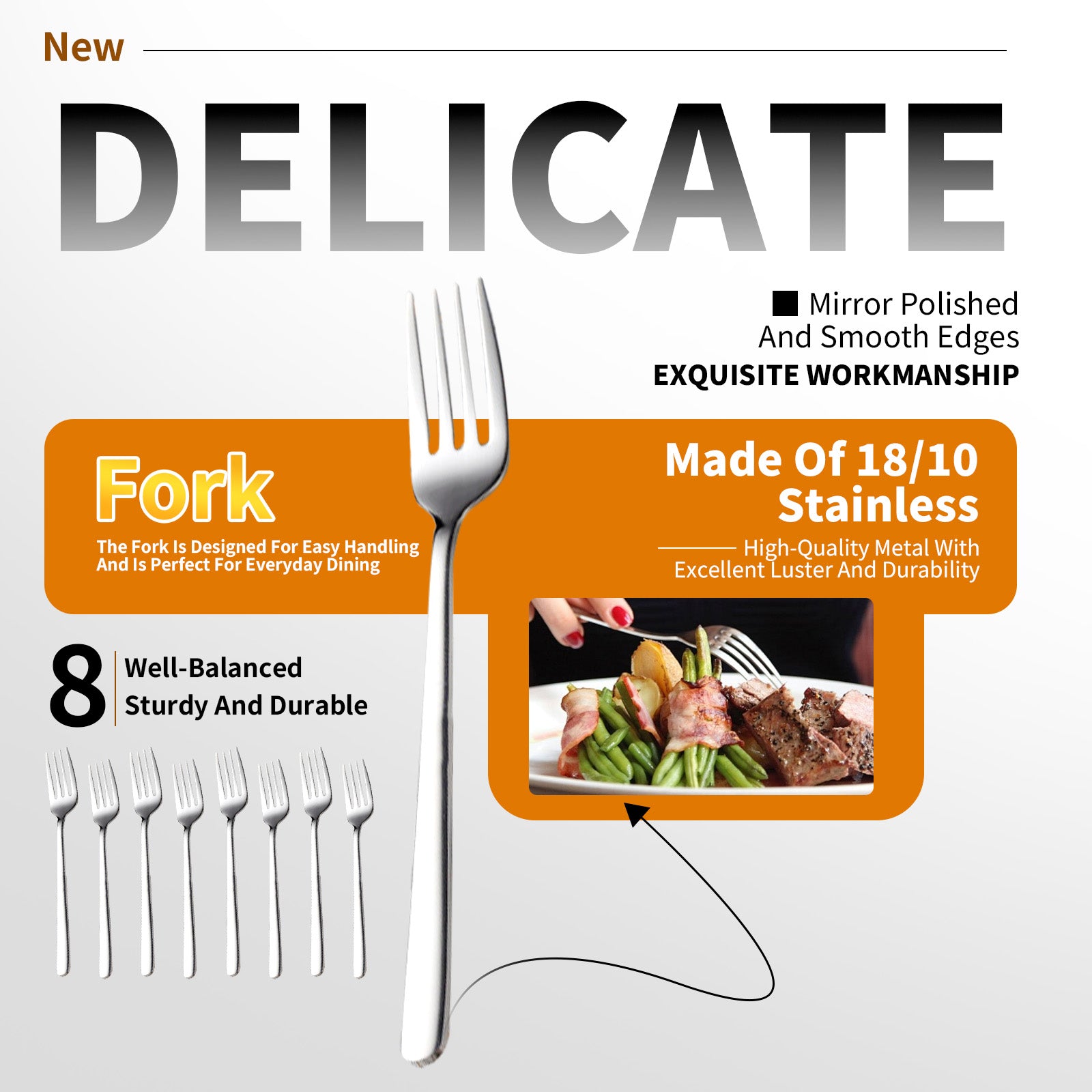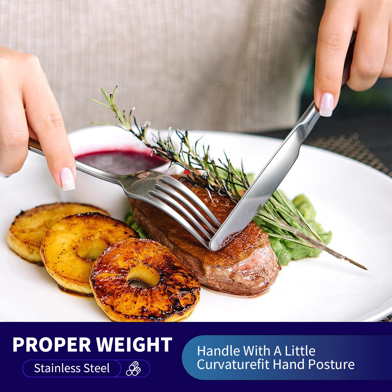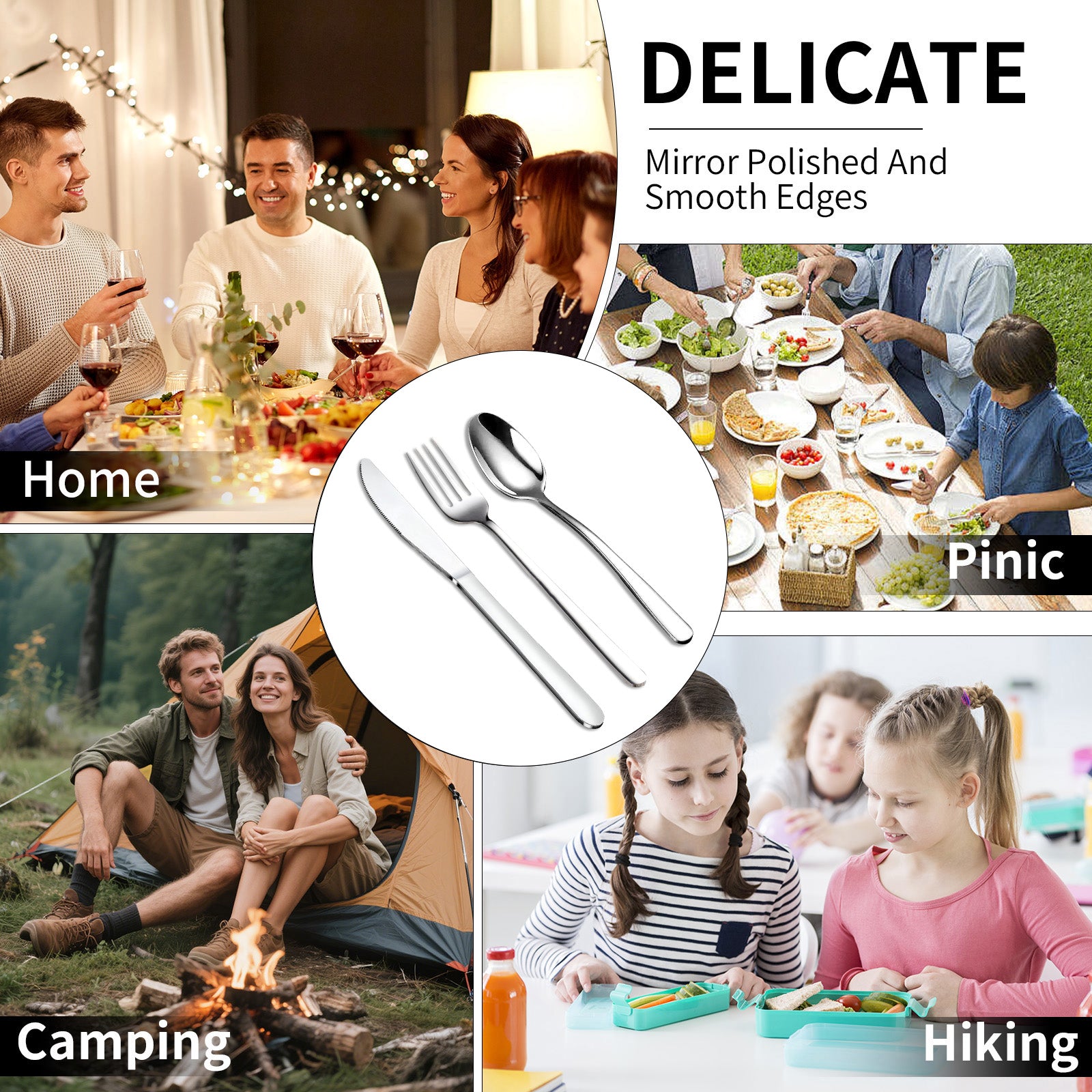 - Smooth Edge: Unlike some brands that have sharp edges that can hurt your mouth, this flatware set is designed with your safety in mind. Each fork and spoon is finely polished by hand 10 times to ensure a smooth edge that won't hurt your mouth when you use it.