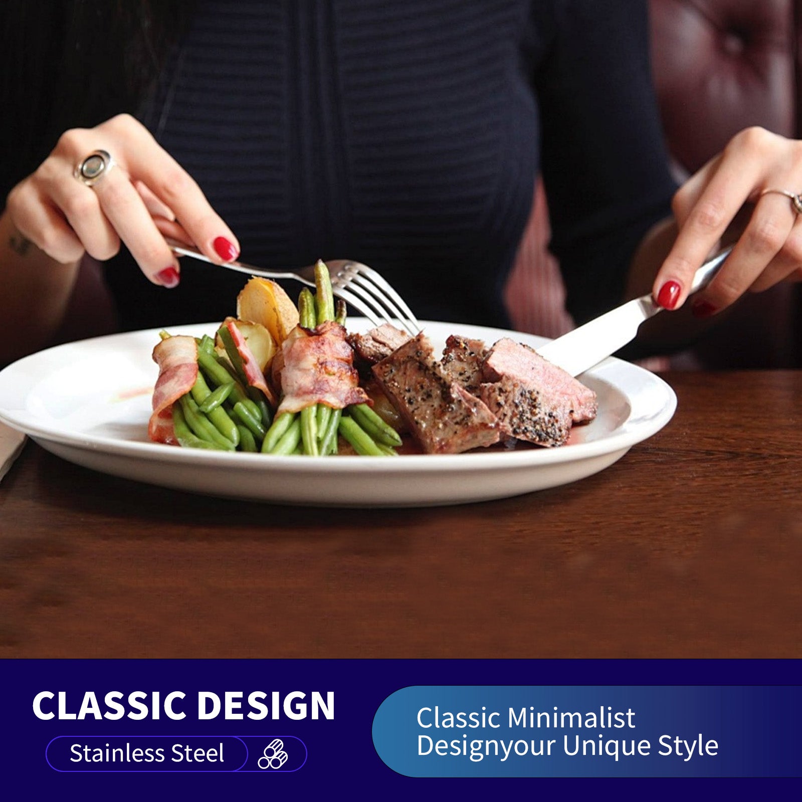- Classic Style Design: This cutlery set adopts a classic style design, simple yet noble. It has the right weight and length that makes it be the most handy one to hold, and you don't need to worry about being too heavy or too light.