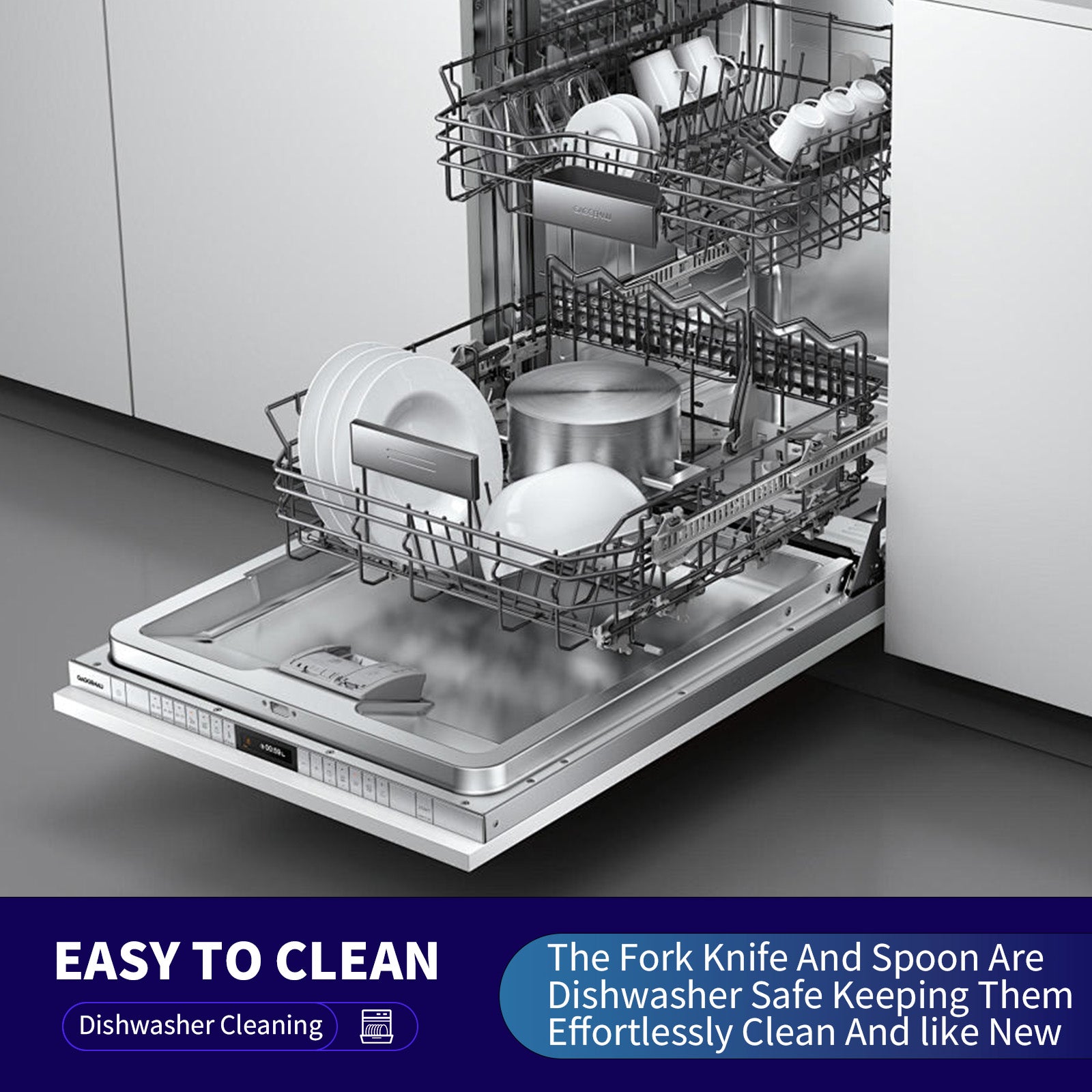 - Easy to Clean: Dishwasher safe, but we recommend hand washing for longer life. After cleaning, allow to dry thoroughly before storing. Refrain from using wire brushes, abrasive sponges or harsh cleaning materials as they may damage the flatware.