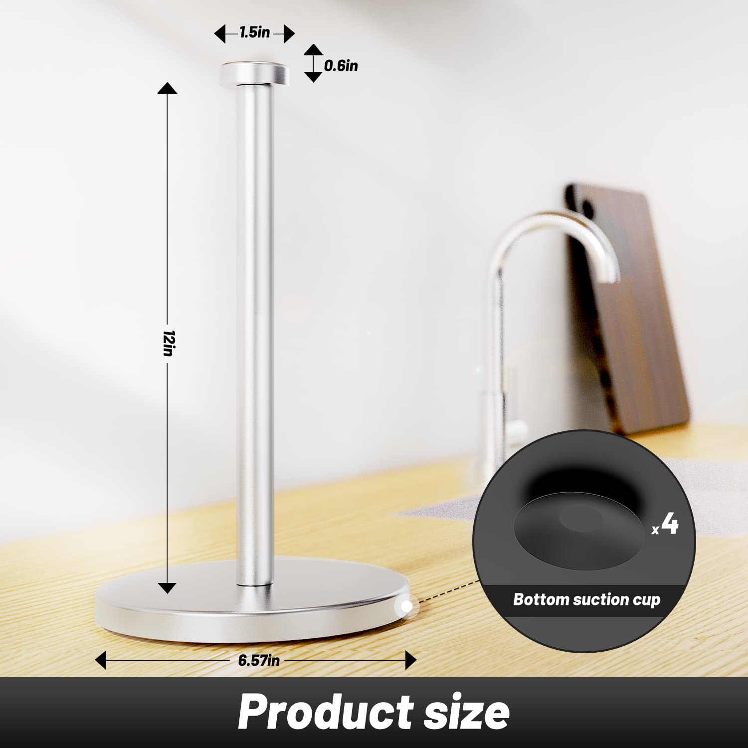 Paper Towel Holder Countertop, Stainless Steel Paper Towel Holder Stand with Weighted Base Suction Cups, Standing Paper Towel Roll Holder for Kitchen Bathroom