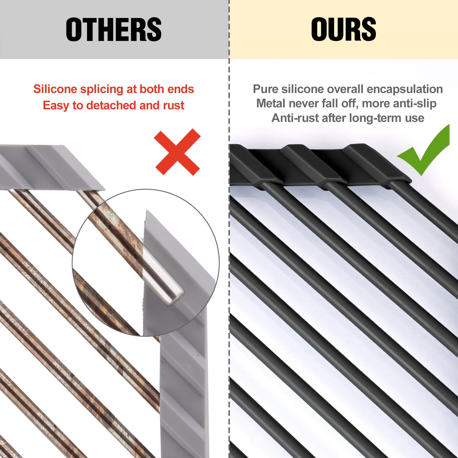 - ✔️【Food Grade Materials】Made of tough 304 stainless steel with a BPA-free food-safe silicone coating and integrated edges. It is rust-resistant, non-slip and very sturdy.