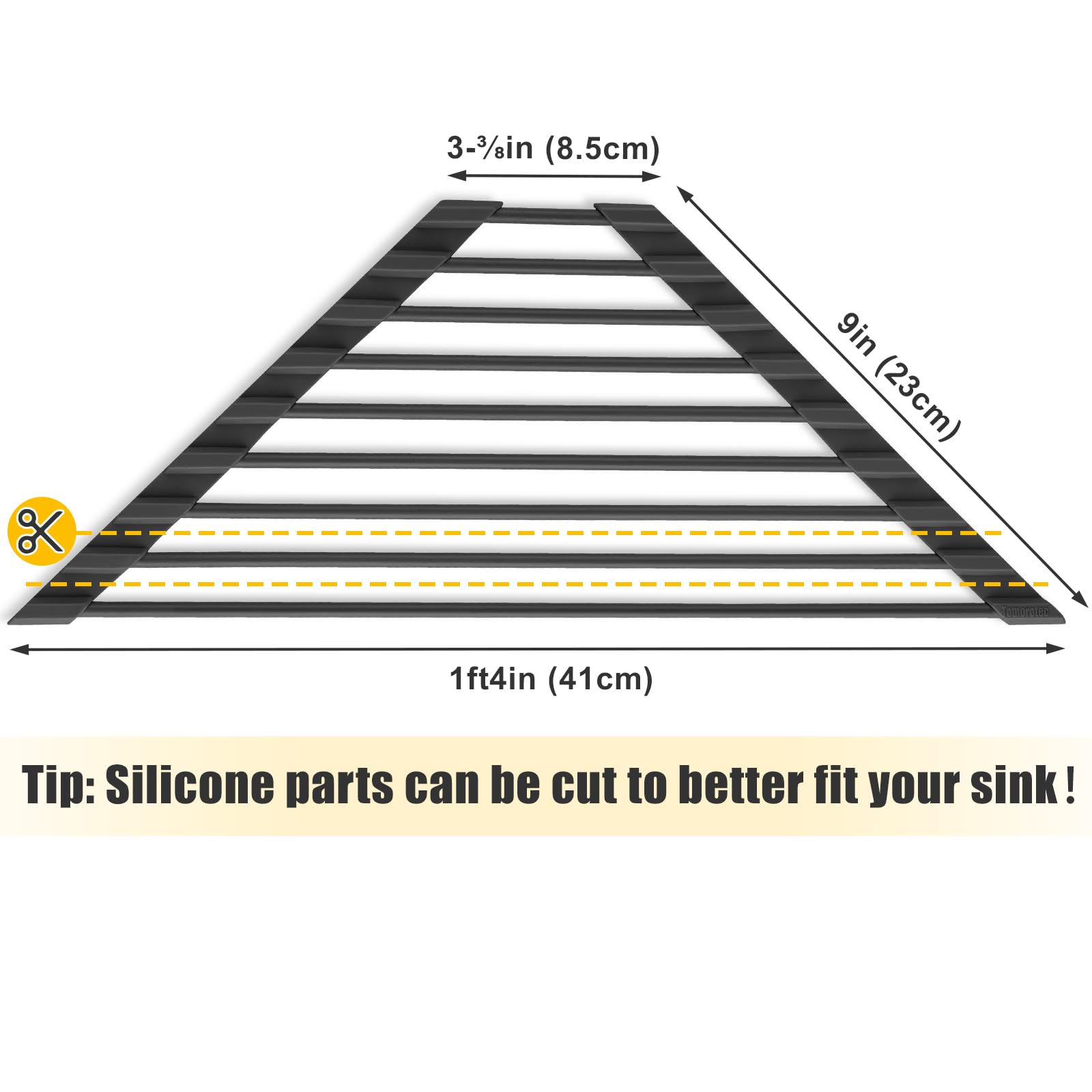 - ✔️【Customizable Size】 Tailored to optimize your kitchen sink corner space with a triangular design. Too big? Simply use scissors to cut the silicone sides for a perfect fit. It's a handy tool that allows you to easily rinse and dry small items to keep your kitchen clean. Ideal for accommodating sponges, brushes, hand soap, dishes and more.